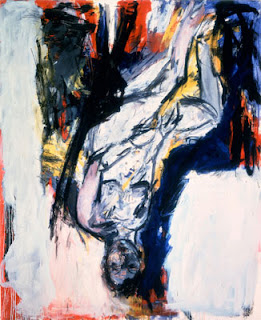 Mi trayecto dentro de la exposición empieza y acaba en el mismo punto. No todos los cuadros me gustan por igual (como es lógico) y la variedad de impresiones es amplia. El cuadro "El pianotauro" de André Masson que encabeza esta entrada me gusta por la carga erótica y simbólica. Del gran Egon Schiele está "Desnudo sentado" simplemente genial, las chicas y no tan chicas con esas caras amarillentas y de aspecto medio enfermizo. Lucian Freud con "Retrato sobre una colcha blanca" magnetiza por su potente luminosidad que parece proyectarse fuera del lienzo. También me impresiona Eric Fischl con un cuadro que parece casi una fotografía por su realismo. La cabeza de la chica desnuda en la cama parece sacudida por espamos. Luego aparece Balthus con "El momento de levantarse" donde la joven Michelina que que a menudo fue su modelo (era hija del portero de la villa Médicis) está encima de la cama y entre sus manos juega y observa un extraño artilugio mecánico ante la atenta mirada del gato. Balthus logra crear una atmósfera de misterio e inquietud durante ese momento de levantarse, tan a menudo tratado por el pintor francés. El único pintor que en vida tenía obras expuestas en el Louvre. Para descansar me siento en esos incómodos bancos situados estratégicamente por las diferentes salas. Delante mio me saluda un cuadro de Georg Baselitz "Elke" que contemplo atentamente mientras mis pies agradecen el reposo. Mi mirada de aficionado detecta que el lienzo que tengo enfrente está al revés. En mi mente empieza una tormenta de preguntas; ¿Puede ser que se hayan equivocado al colocarlo? ¿Se lo comento al niñato (estudiantil en prácticas) que se pasea con las manos en la espalda?. Al final oigo a un hombre que repite a su pareja lo que oye por el teléfono guía. "Cariño, este pintor pinta siempre al revés". Voy a la cafetería de la fundación un poco trastornado y tomo el café intentando mentalmente dar la vuelta al cuadro. Seguro que algún multimillonario tiene un cuadro del artista en su mansión colocado al revés, es decir, al contrario de la idea del artista (surgida en 1969).